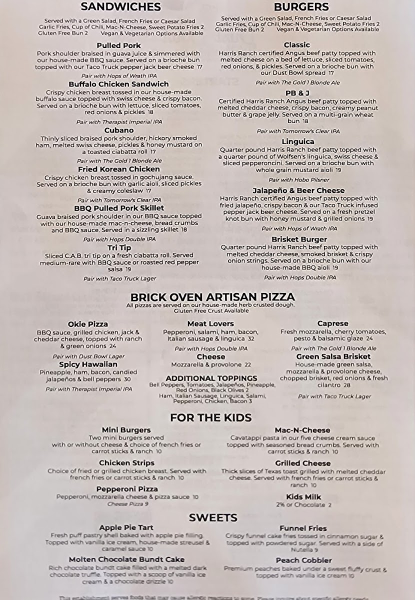 Dust Bowl Brewing Co. Brewery Taproom Menu (2025 Update)